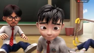 "Perhatian semua siswa, hari ini sekolah harus ditutup karena, uhh, kabut asap."