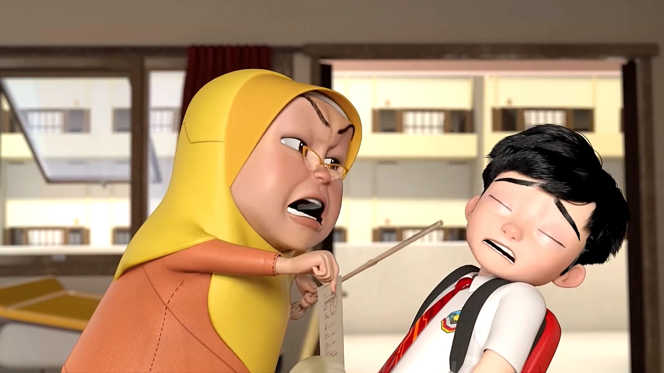 Apabila Ali tiba di kelas, dia memberi isyarat kepada Viktor untuk mengalih perhatian Puan Munah. Kemudian, Ali menyelinap masuk ke dalam kelas, bagaimanapun ditemui oleh Alicia. Puan Munah mendapatkan Ali dengan rotan dan memarahinya kerana gagal lagi dalam ujian matematiknya. Ali meminta maaf kepadanya, tetapi cikgunya itu menjawab bahawa tidak ada gunanya meminta maaf jika dia masih tidak berubah lalu melemparkan kertas ujian Ali ke arahnya dan mengejutkannya dengan membelah kertas itu menggunakan rotannya.