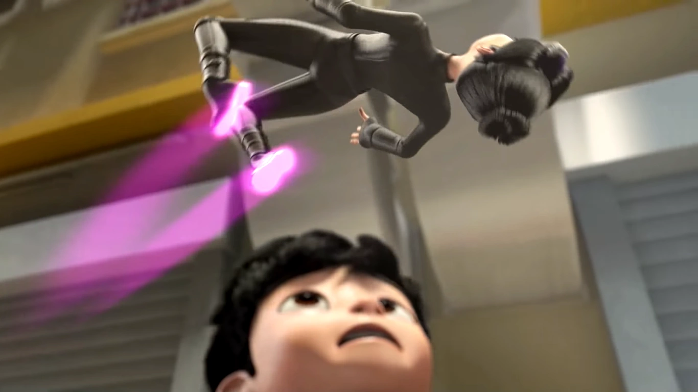 Berpandukan I.R.I.S, Ali mengelak lontaran Shox Stix dari Dos, tetapi Trez menghentam lantai sehingga Ali tercampak keluar dari bangunan. Ali terselamat dengan bertaut pada tali yang tergantung di luar bangunan. I.R.I.S. mencadangkan untuk bergayut masuk ke aras yang setara, tetapi Ali tidak sempat kerana Trez menarik tali naik ke aras asal. Sebagai ganti, Ali menyusup ke tepi Dos dan Trez tanpa disedari. Sebaik sahaja sedar, Dos dan Trez mengulangi serangan lama tetapi Ali dapat mengelak setiap serangan berpandukan I.R.I.S, malah menyebabkan dua penyangak itu berlanggaran.