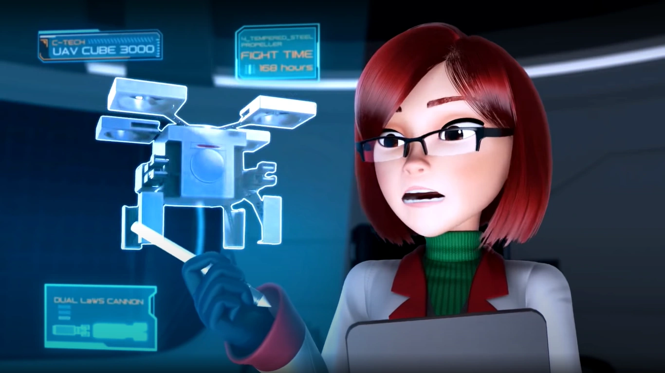 Ali bertanya barang apa yang begitu penting untuk dilindungi, dan Jenny memaparkan rajah dron UAV-CUBE 3000 sambil menerangkan bahawa ianya pesawat udara tanpa pemandu yang dikawal dengan sarung tangan khas; General mencelah bahawa ianya senjata teknologi baharu yang berbahaya jika jatuh di tangan yang salah. General menugaskan Bakar ke bahagian keselamatan dan Ali ke pengawasan. Ali mengeluh kerana sekadar diberi tugas pengawasan tetapi General mencebik ke arahnya supaya patuh.