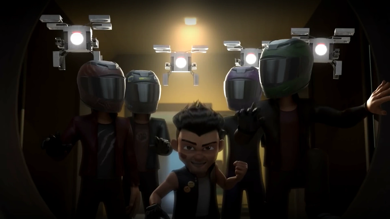 Sebuah lori C-Tech yang mengangkut bekalan dron UAV-CUBE 3000 dan diiringi oleh dua kereta polis di hadapan dan belakang memasuki terowong, diserang hendap oleh geng penyamun bermotosikal Komeng. Empat orang konco memintas ke hadapan dan melemparkan sekotak telur ke arah cermin depan kereta polis, menyebabkan ia terbabas, sementara dua orang lagi konco pula melepaskan tembakan untuk menjatuhkan kereta polis belakang. Ini membuka ruang kepada Komeng yang menunggang motosikal besar ke dalam terowong dari belakang dan mengeluarkan mata gergaji dari tayar motosikal untuk memecah masuk ruang memandu lori, kemudian dia menghumban pemandunya dan merampas lori.