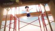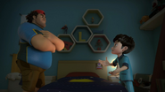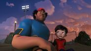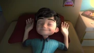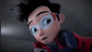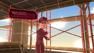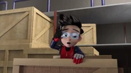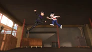 The scene changes to Bakar, who gets captured by Dos and Trez in an under-construction building as seen in the previous episode. Ali then appears to save his uncle using the I.R.I.S.. Dos uses her electric shock needle and Trez throws wooden boxes to Ali. With the guidance from the I.R.I.S., Ali runs towards Trez and Dos' needle hit Trez, electrocuting him. Then, Ali and Dos jump towards each other, and ends with Ali getting through the other side and an explosion occurs on top of him.