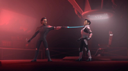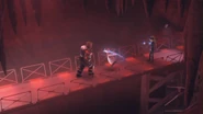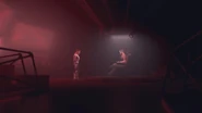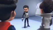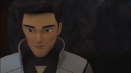Professor Akram is getting closer to the cave entrance to exit the headquarters, but he sees Seis and Siete appear and immediately hides by clinging to the platform. After the twins left, the Professor got back on and rushed away, but was stopped by Trez and turned back, then grabbed by Nueve with telekinesis so that Trez could catch him. "Uno" came asking Trez to get off so that Uno could carry the defector himself, then ordered Trez and Nueve to go hunt down Rizwan.