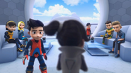 Rudy closed the story by saying that Djin was the only one among M.A.T.A. who was willing to help him, and that Djin would do anything to defend Cyberaya's fate. Ali then questioned Djin's actions in betraying the agency that protected Cyberaya, so Rudy continued to reject him and insisted that Djin was not a defector. Ali then asked why Rudy didn't continue to follow Djin, whom he considered good. Ali's words shocked the other friends. Rudy gets mad and goes to attack Ali, but is restrained by Chris and Jet while Alicia pulls him away.