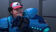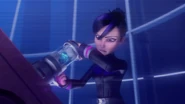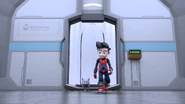 At night, Ali contemplated I.R.I.S. in his grip in the bedroom, nervously awaiting the decision that would be made against him. He remembered the first time he used I.R.I.S. and defeated Dos and Trez where he was kidnapped, and also the time when Comot returned I.R.I.S. to Ali. Comot was present, rubbing his body against his side as a way to soothe his grief. Ali slept soundly until 3:00 AM when he received a call from M.A.T.A. to go to the front. Upon arriving at the base, he was confronted by a swarm of droids and drones shooting at him. At first, Ali was able to dodge and deflect all the shots with his gadgets. Then, he tried to unlock the control room door but failed. The droids were advancing towards him, and he was increasingly unable to defend himself from the barrage of gunfire. Suddenly, all the droids shot each other down until only one remained, and that was subdued with a lollipop stick blowpipe; Agent Rizwan emerged as Ali's new mentor.