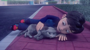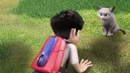 Ali was running around the schoolyard being chased by Syed and Shaun. He tripped on a rock and fell, causing Comot to jump out of his backpack. Syed pointed out that Comot had scratched his finger, but Ali dismissed it as a trivial matter. Syed was hurt because he remembered every time he had been unfortunate because of Ali and Comot's past behavior: Comot dropped a bucket on Syed after being startled by Ali's can; Comot stole Syed's gadget and was saved by Ali; Syed stepped on Comot's feces while chasing Ali.