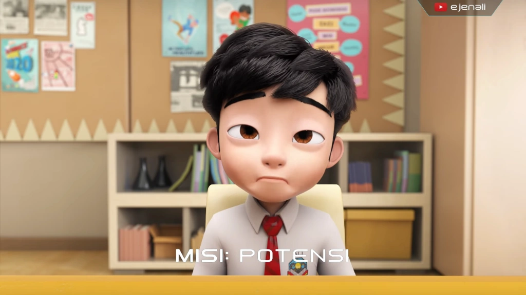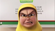 At school, Puan Munah teaches math class with the topic of compound operations. Ali was sleepy because he was tired from the agent's training earlier. Serik served repeatedly Sarsi raised his hand to answer, Puan Munah suspected Ali for the question asked. From Shaun's whisper next door, Ali gave the answer "x = 3" even though it wasn't algebra or linear equations class, making the whole seagull class burst into laughter. Puan Munah jumps back to Ali's desk and punishes him for standing outside the class. After the class, Mrs. Munah came out to reprimand Ali that the purpose of this punishment was for Ali to learn not to repeat bad behavior, but Ali fell asleep while standing, so Mrs. Munah screamed until it echoed to surprise Ali.