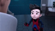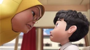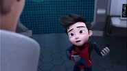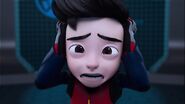 The first attempt obviously did not go well; Rizwan reprimands Ali's reckless and unprepared attitude by telling him that the enemy will not wait for him to be ready. Ali admitted that he had made a mistake; Rizwan frowned and ordered that not everything will go smoothly in the real mission, so he should stay calm even in critical moments and never lose focus. In a firm tone, Rizwan added that there was no point in wearing I.R.I.S. if the wearer cannot play a role, after all M.A.T.A. needs an agent capable of mastering the I.R.I.S, so "don't waste our time." Ali who was heartbroken apologized. Rizwan tells Ali to repeat the simulation, but Jenny reminds him that he will be late for school. Ali was also anxious and rushed out, followed by Comot.
