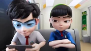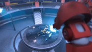 In the Azurium Station control room, Dos urged Trez to quickly finish the job before the agents realized they were not everywhere on the station; Trez tells Dos to be quiet so he can be faster. Ali arrives there and hides, quietly trying to contact the other agents but is interrupted. Suddenly, Ali's phone rings loudly, calling Viktor, so he immediately rejects the call. This causes Dos to find Ali and throw a Shox Stix at him; Ali dodges, prepares a yoyo and tells Comot to call the other agents.