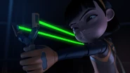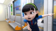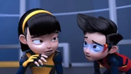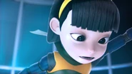 Still holding a grudge, Ali reluctantly followed Alicia. Alicia said Ali didn't need to follow her because she could act on her own, while taking out a Ballistic. Ali insisted on following because Rizwan had ordered her. Alicia scolded Ali, saying she didn't have time to deal with him. Ali tried to intercept Alicia but was knocked down, then she got up and prepared a yoyo, criticizing Alicia's actions. Alicia fired a blue Ballistic bullet to pin Ali to the floor and told him to get out of M.A.T.A. so as not to cause trouble for anyone. Ali told Comot to help her but Comot just grinned. A moment later, the magnetic effect of the Ballistic bullet faded and Ali got up again. Comot meowed at Ali to follow him in the opposite direction, where I.R.I.S. detected the presence of Dos and Trez.