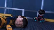 Dr. Aaron continued to express his emptiness with a reminder that Uno promised to destroy their enemy, even doing whatever he needed if he helped get I.R.I.S. Uno controlled Trez to move towards Dr. Aaron and lifted him by the neck. Uno ordered Dr. Aaron to calm down with a reminder that the scientist had no right to determine the appropriate action, and instead he reprimanded Dos and Trez not to be careless until he had to do the work himself. Dos complied, Trez knocked Dr. Aaron down, his veins no longer glowed and they both came out again.