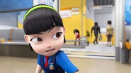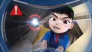 The station's electricity supply was restored, and Ali was worried when Dos threw Alicia into the reactor center. Rizwan, who was busy fighting Trez, contacted Ali to ask for the status. After being told what happened, Rizwan told Ali to stop Dos because his action of escaping the azurium would invite destruction to Cyberaya. Ali asked what about Alicia; Rizwan replied: Run the Rapid Protocol. Ali was upset at those words, looking at Dos who came out to escape the azurium and Alicia who was facing death from the reactor's radiation. In the last moments before the reactor erupted, Ali chose to save Alicia with Aero Boots. Seeing Alicia wiping away her tears, Ali scolds Alicia for crying; Alicia responds with a side punch. Bakar arrives to help the two boys and asks what happened, followed by Rizwan who is disappointed to see the effects of Ali's actions and the loss of the azurium generator.