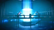 Trez managed to turn off the power system and take over the fight from Dos who was given two minutes to complete their objective. Rizwan tried to chase Dos but was stopped by Trez. Rizwan tried to pinch Trez but Trez was protected by his invulnerable clothing. Rizwan ordered the two boys to chase Dos while dodging Trez's successive punches and kicks. Ali and Alicia arrived at the reactor and readied their respective weapons. Finding Dos removing the azurium container that powered the radiation-emitting machinery, Alicia lunged at him but was evasive. Alicia and Ali surrounded Dos from both sides above the reactor's circular corridor, so Dos acted by launching the Lightning Crystal to cut off the station's electricity supply.